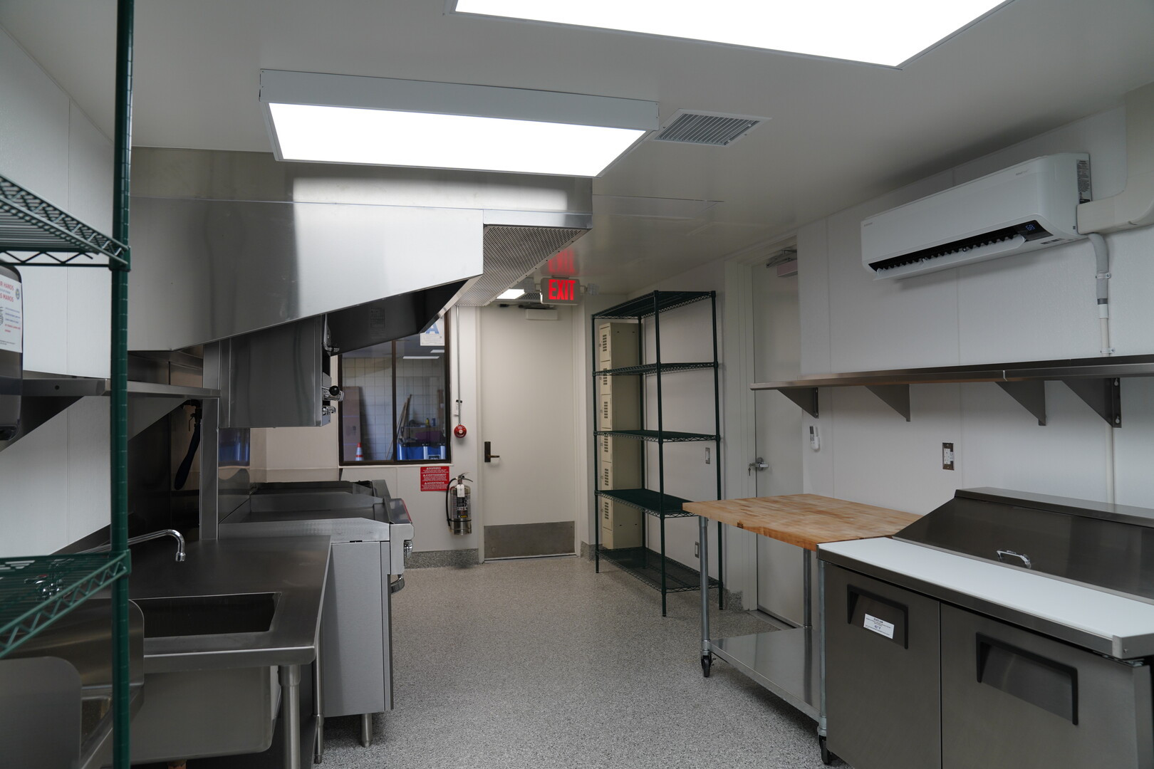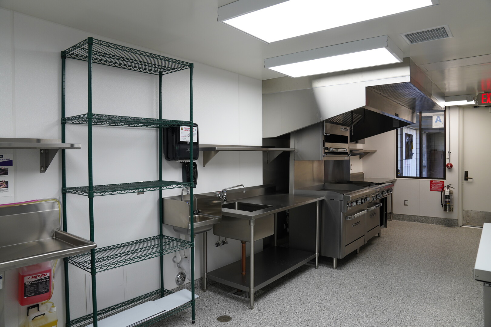 Demolition of existing space and construction of new full-service training kitchen, including plumbing, mechanical, electrical, finish carpentry, framing, flooring, and specialized kitchen equipment.