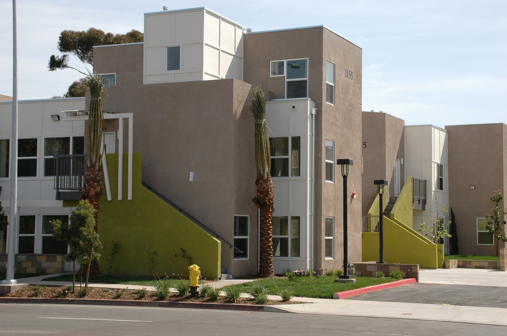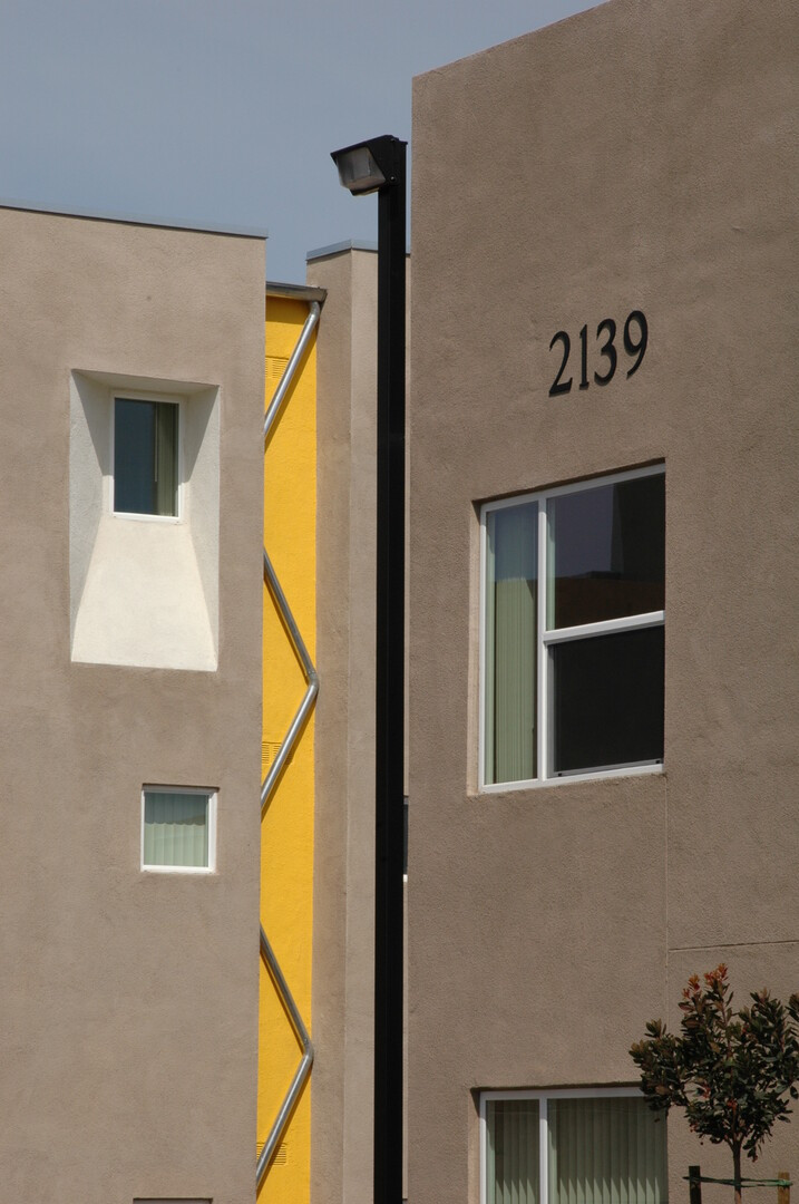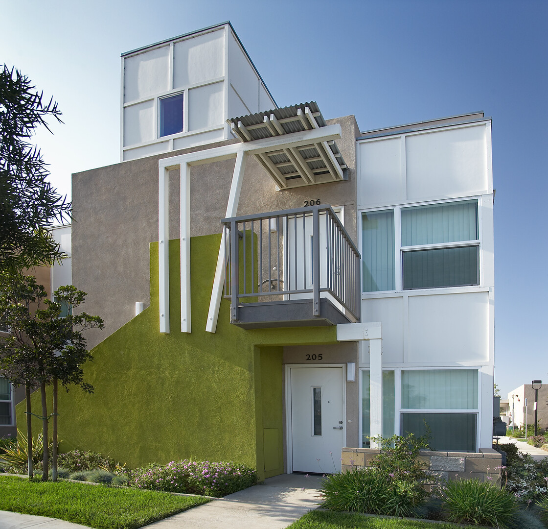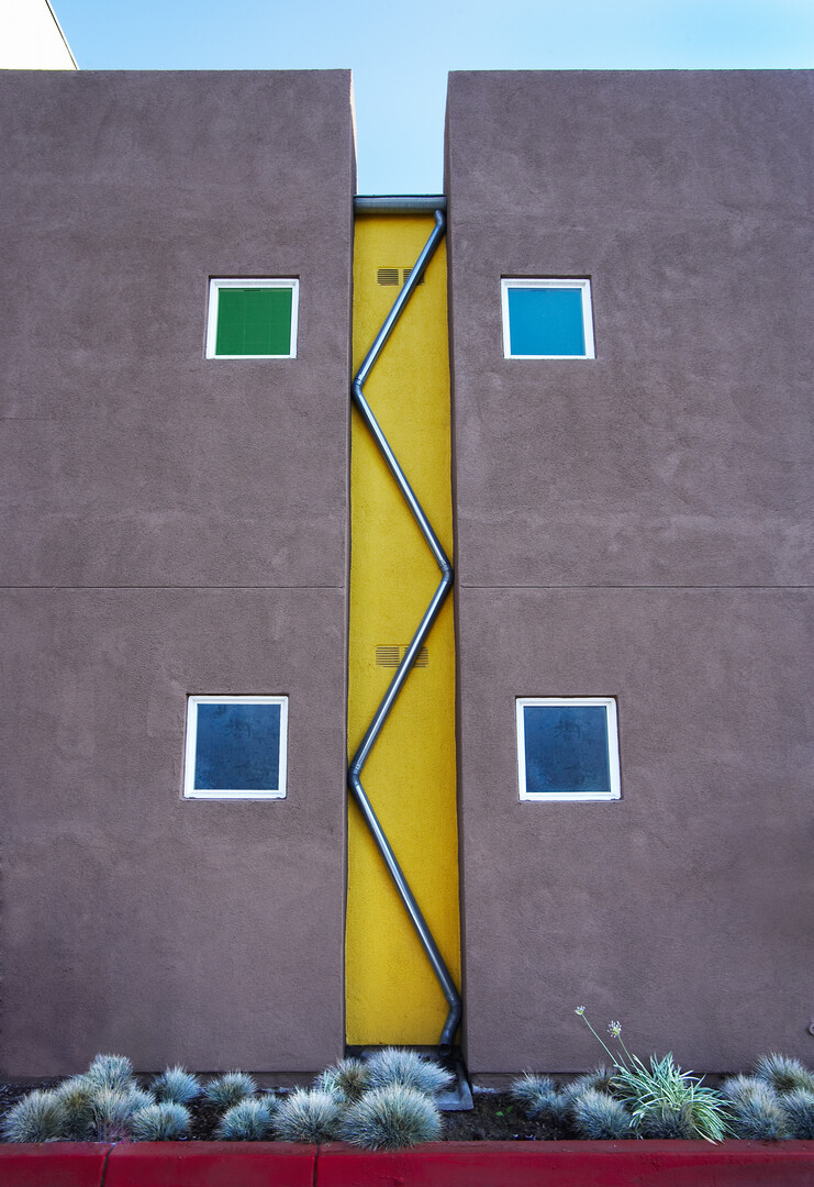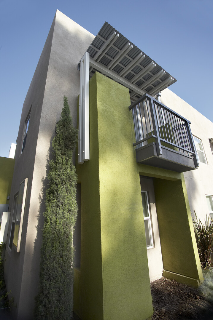 50 unit affordable apartment complex on narrow constricted site. Unique architectural components and neighboring creek required detailed coordination. Photovoltaic and solar hot water systems provide power and hot water for the common area building and laundry facilities.