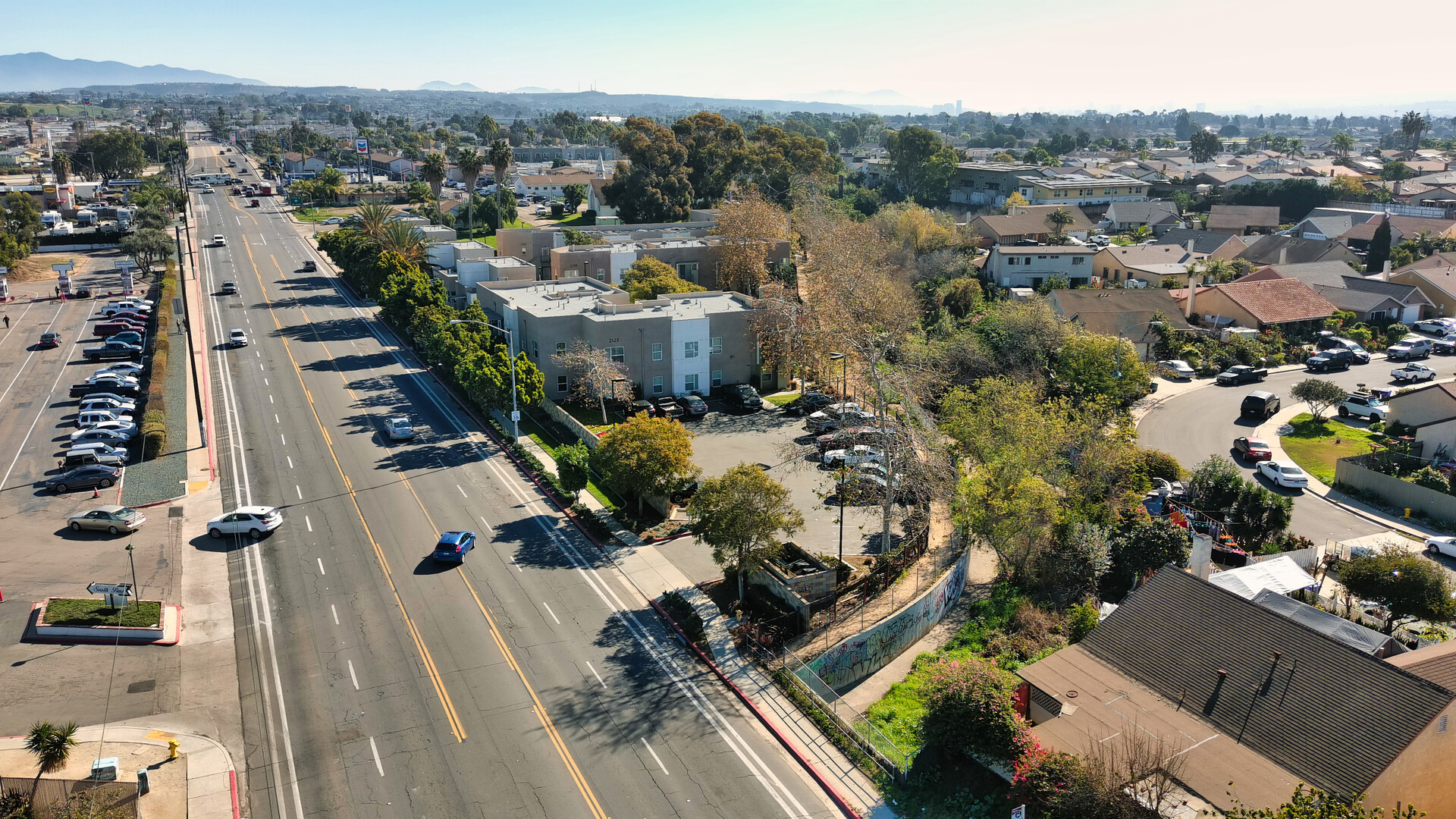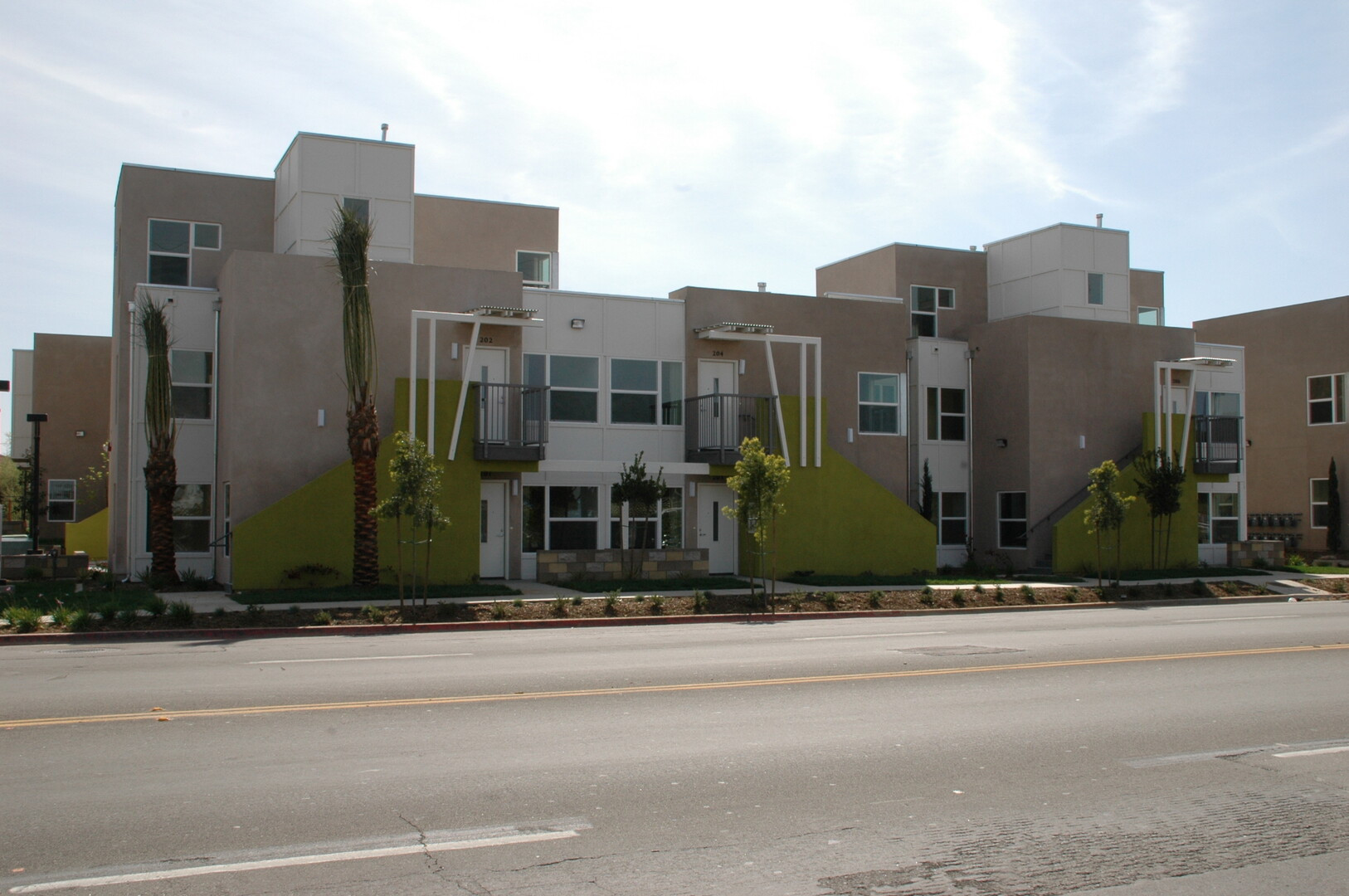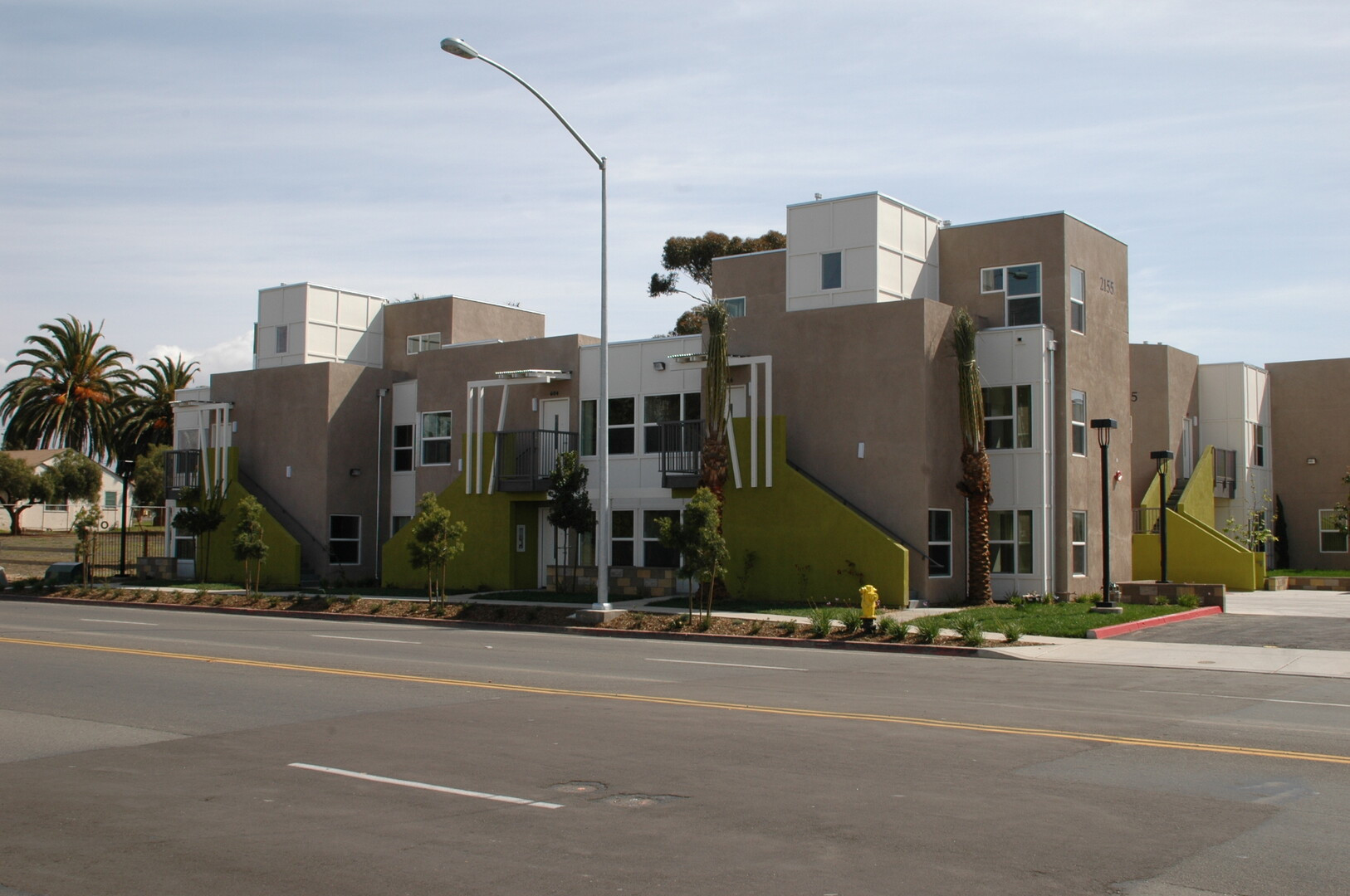 50 unit affordable apartment complex on narrow constricted site. Unique architectural components and neighboring creek required detailed coordination. Photovoltaic and solar hot water systems provide power and hot water for the common area building and laundry facilities.
