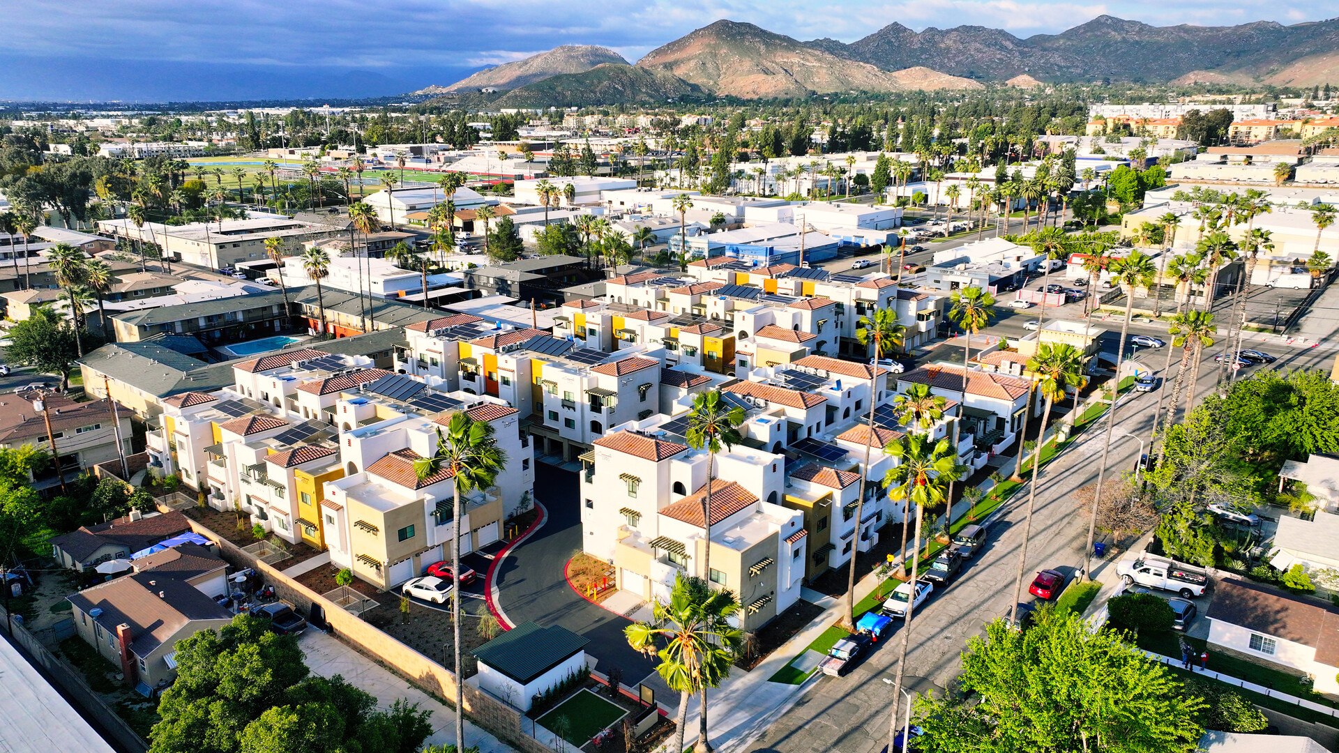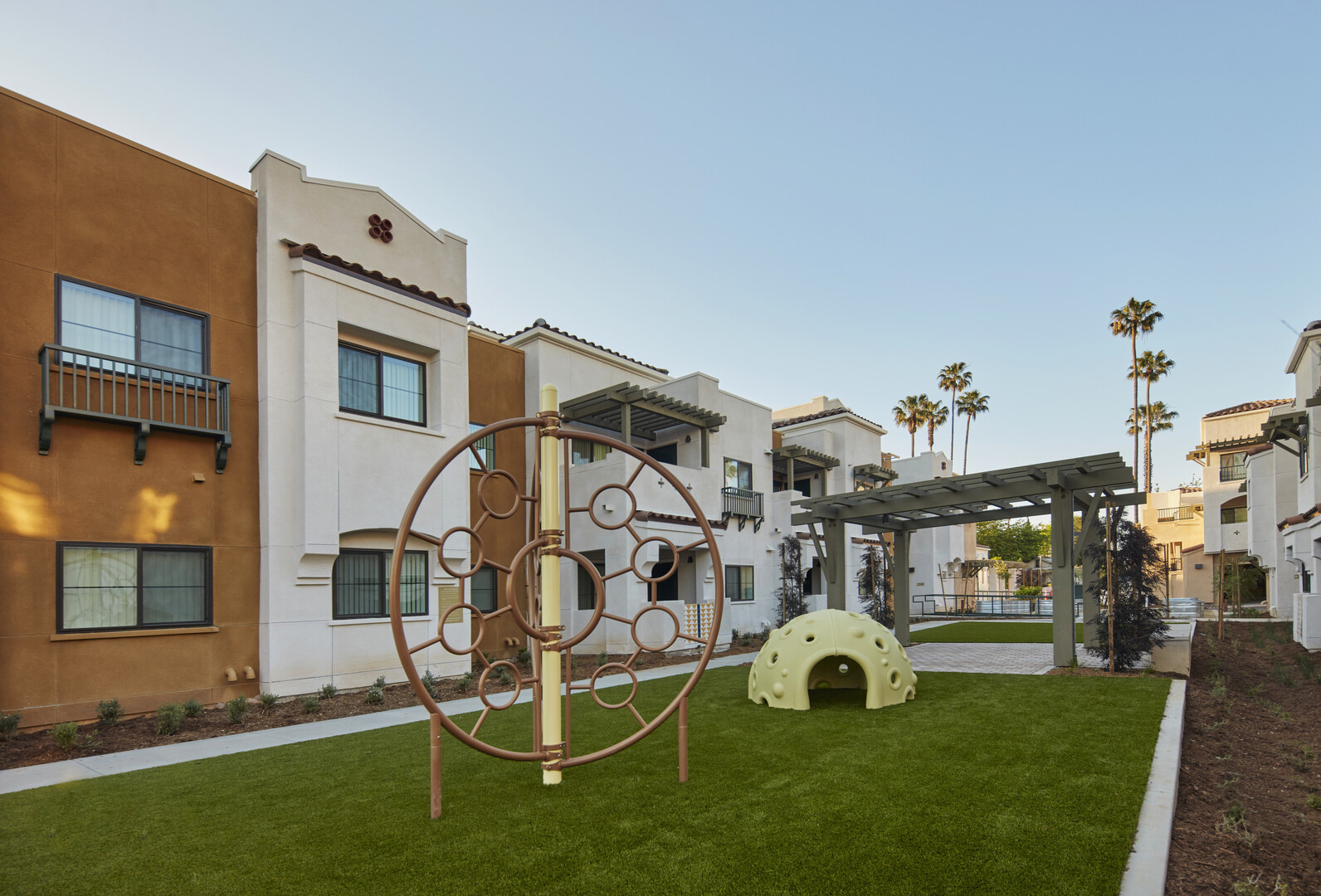 This amenity-rich, beautiful, slab on grade affordable housing community in the Chicago Linden neighborhood of Riverside, California, consists of 65 apartments spread over five 3-story garden-style buildings. Separate one-story community and annex buildings provide services and community space for residents.