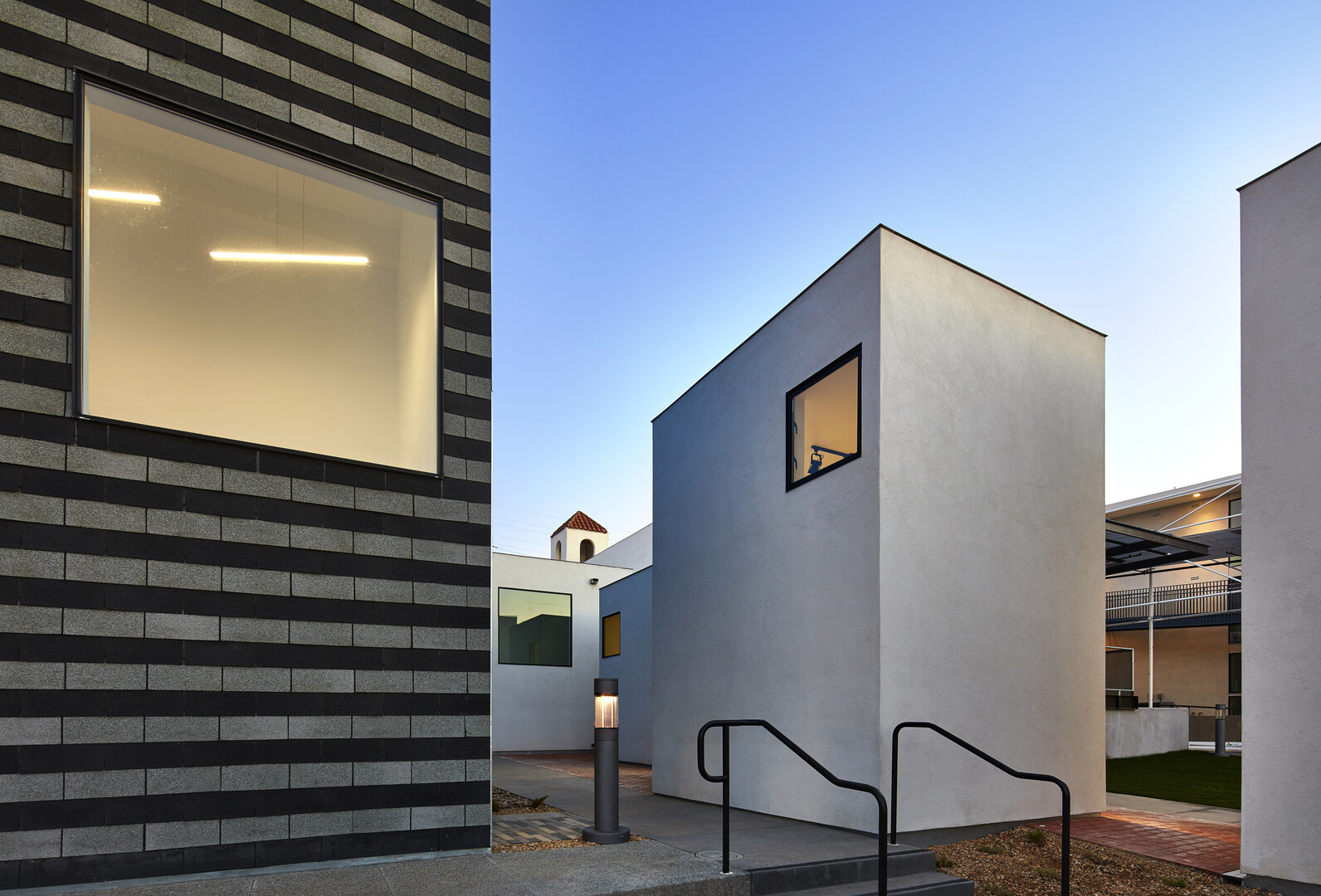 Living Rooms at the Border is a 13,469 square-foot mixed-use project in the heart of San Ysidro, in the City of San Diego. Designed by Teddy Cruz, UCSD Professor and Director of Urban Research, over 17 years, the unique labor of love project includes 10 units of affordable housing and the restoration of the historic Our Lady of Mount Carmel Church, built in 1927, into a theatre and community space.