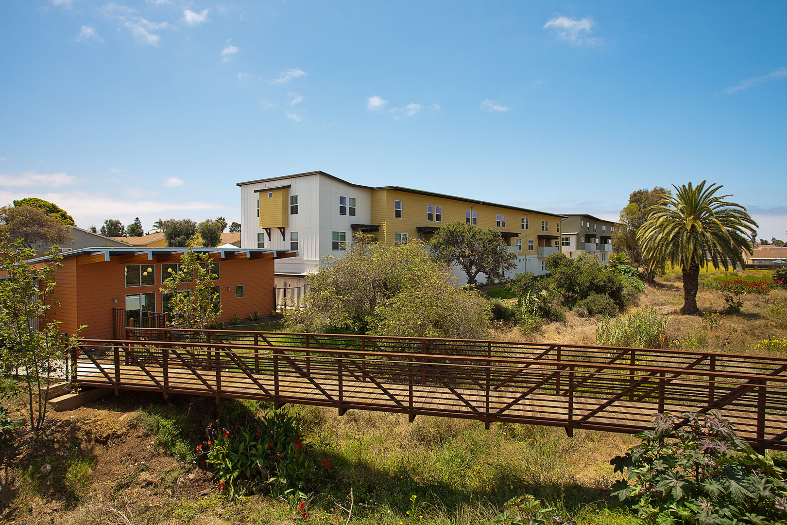 50 affordable apartment units consisting of four residential buildings, one community building, two laundry buildings, and extensive site amenities, including a pedestrian bridge and trails, tot lots, and open spaces. Green Point Rated project featuring numerous water saving components, solar water heating, and photovoltaic power serving the common area.