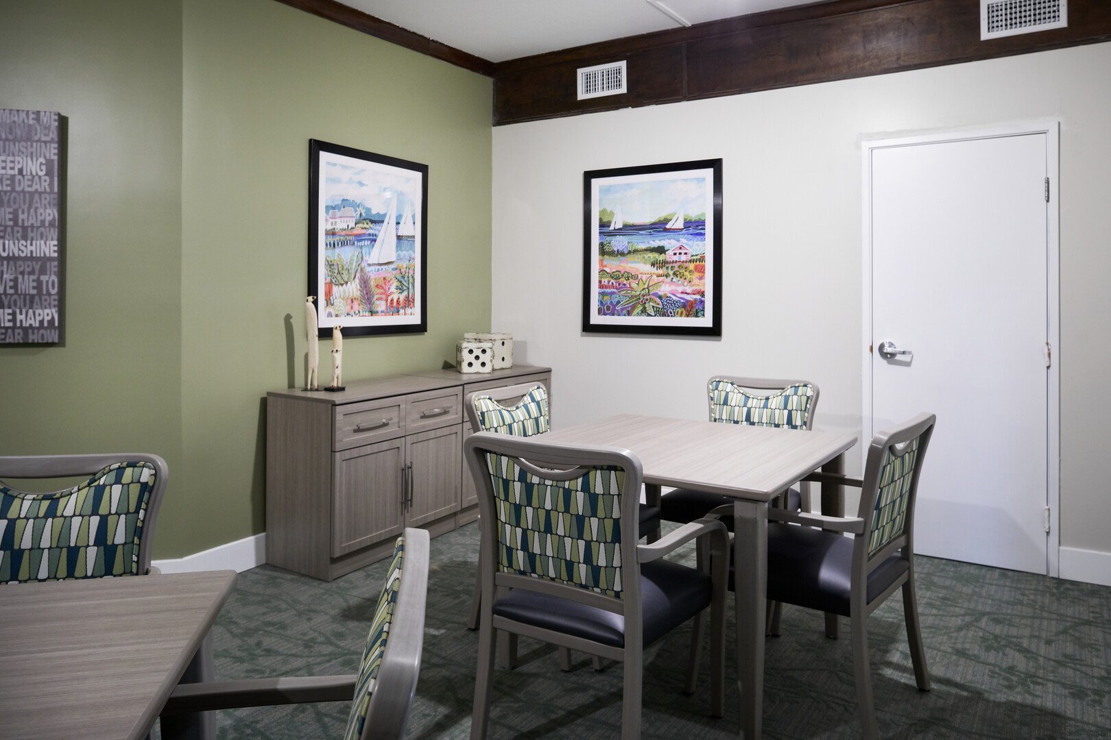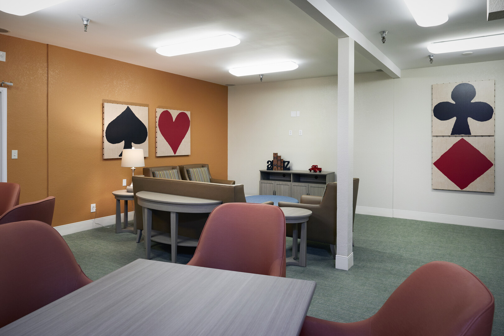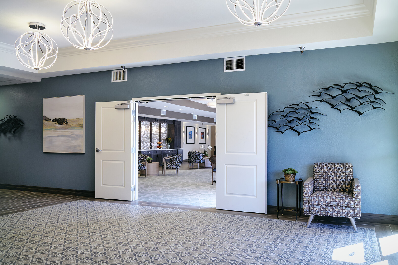 Live-environment renovation of an existing assisted living facility in the La Mesa area of San Diego. Renovations included significant upgrades to common areas, hallways, fitness center, ballroom, and memory care facility.