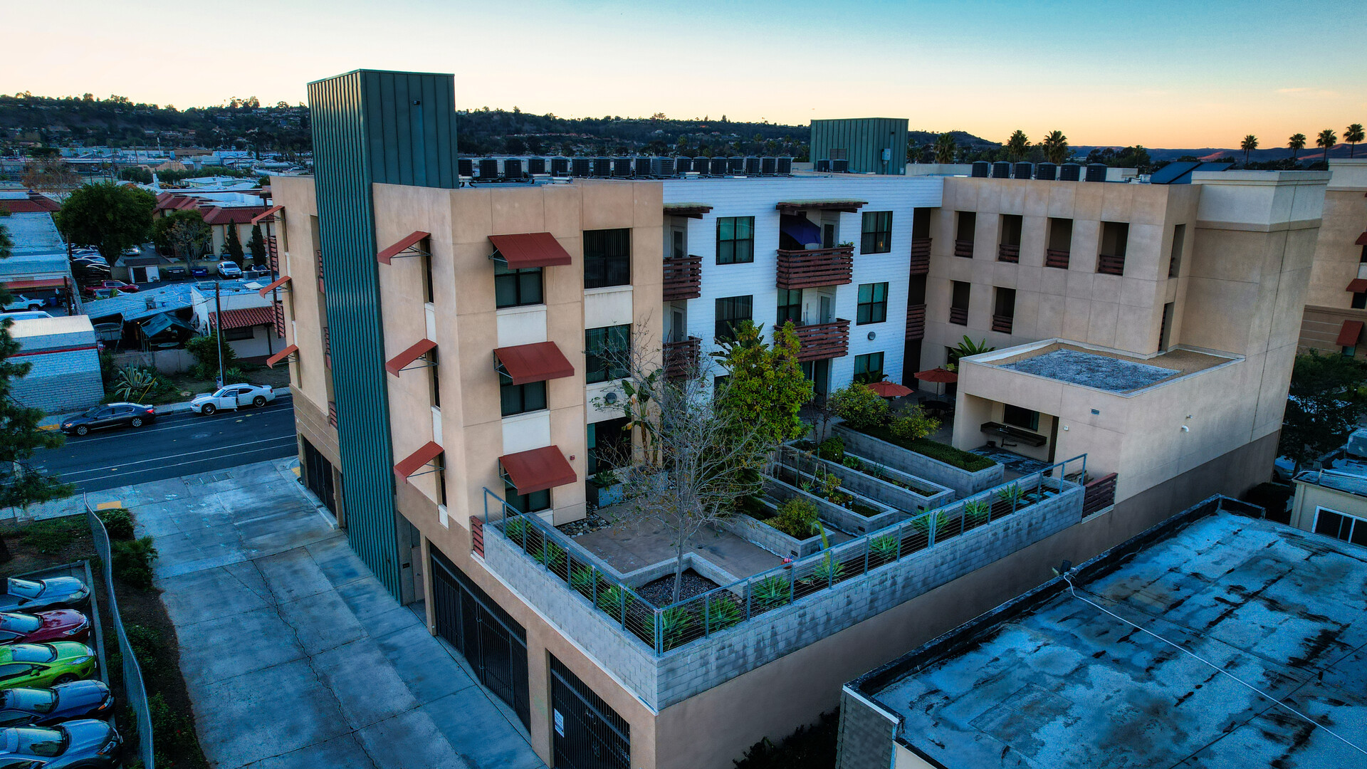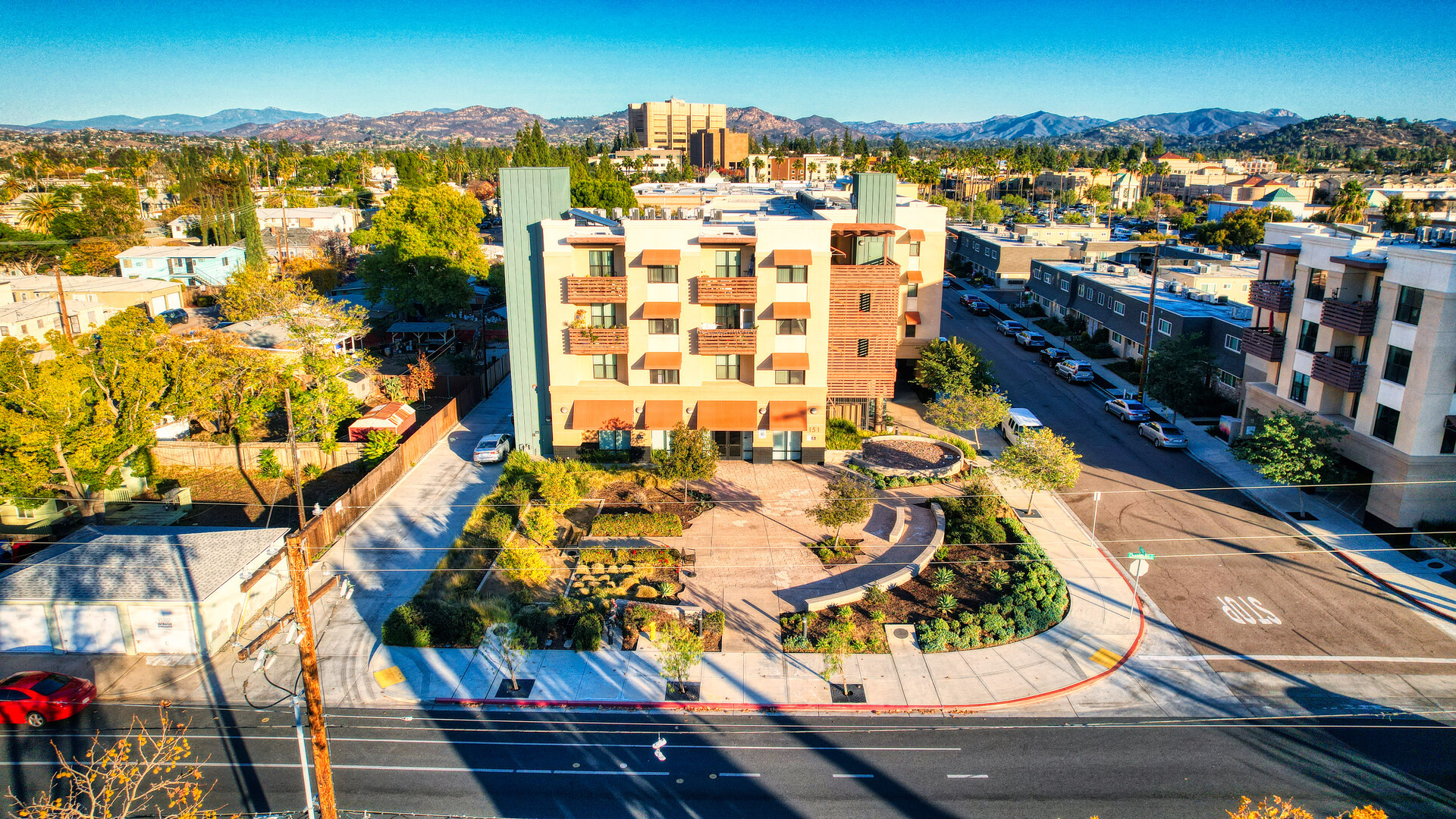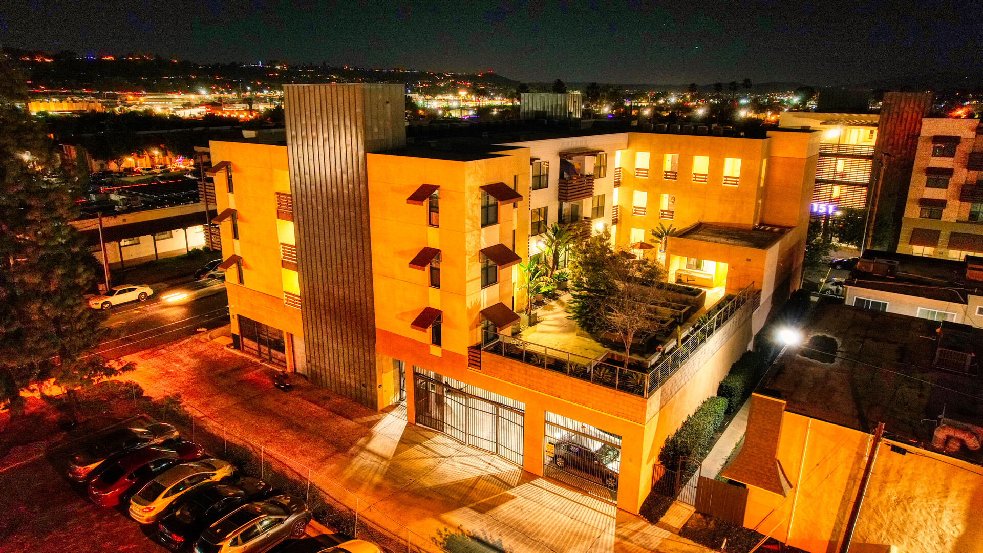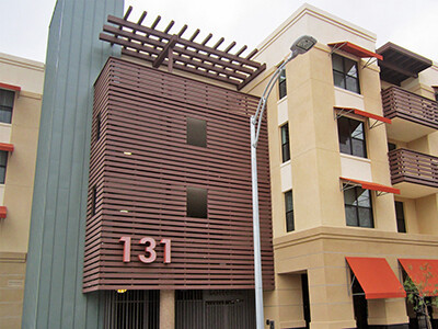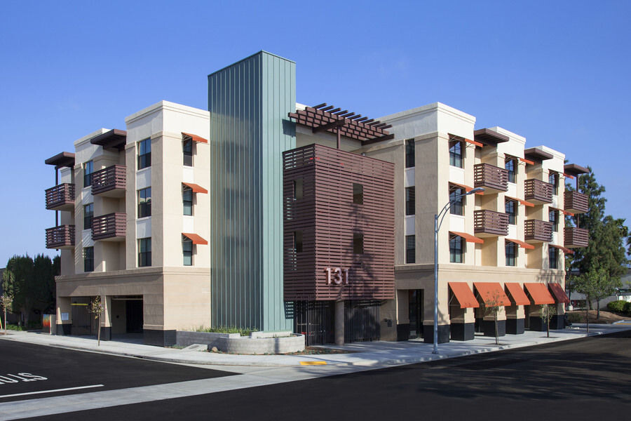 49 affordable senior apartment units with 2,000 SF of commercial space. Consists of two separate lots with podium decks. This LEED certified project offers various green features, including solar photovoltaic and solar hot water panels, green roof, roof-top garden, low flow plumbing fixtures, as well as drought tolerant landscaping.